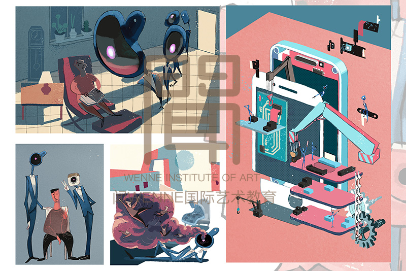 其實作品集更看重的是學(xué)生的思維、想象能力和動手能力,如果有合適的中國元素適時添加確實有畫龍點睛的作用,但是也不需要刻意去運用中國元素。MICA強調(diào)插畫家必須具備明確的歷史主線,側(cè)重插畫家在文科領(lǐng)域的知識,培養(yǎng)學(xué)生在視覺、智力和技術(shù)三方面的發(fā)展。